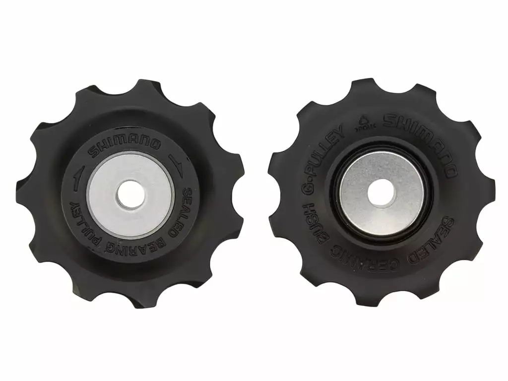 Dette Shimano pulleyhjul sæt er fremstillet i nylon og med bøsninger af stål. Pulleyhjulene har 11 tænder og passer til fl…