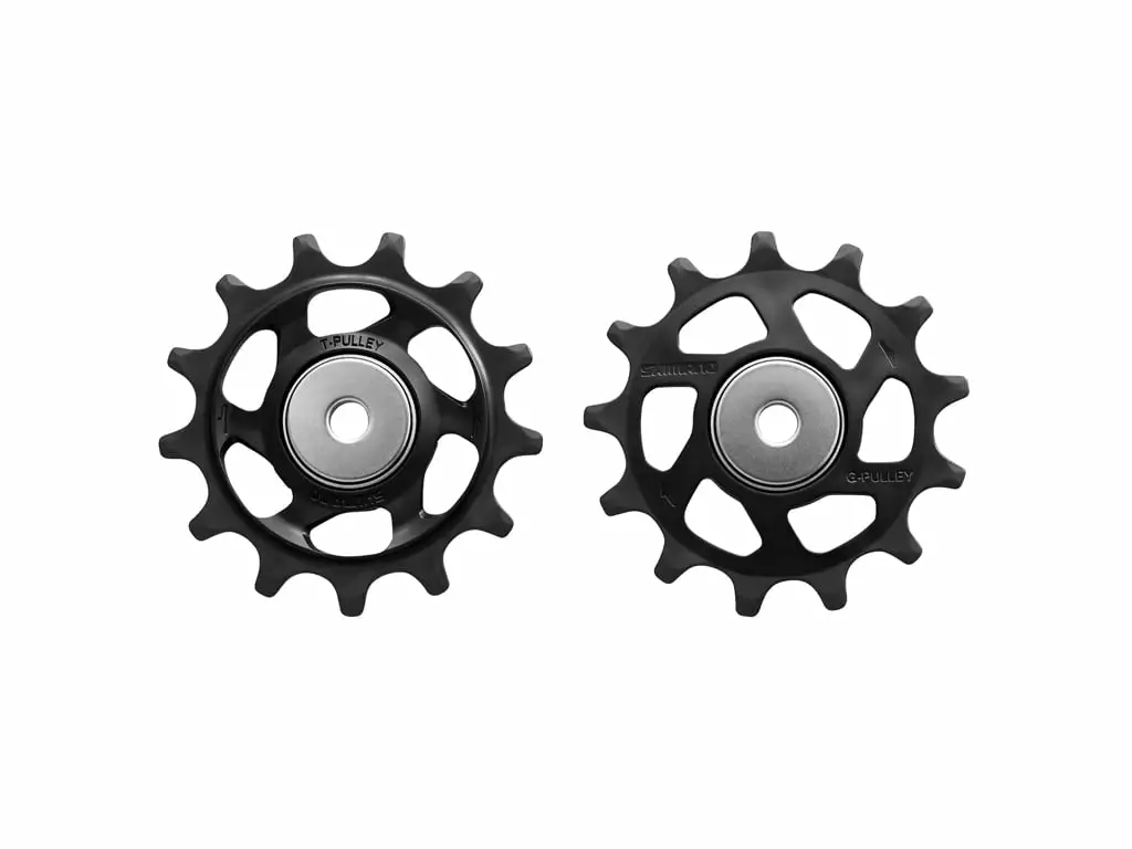 Fra Shimanos top-serie af MTB-komponenter, får du her et Shimano pulleyhjul-sæt bestående af ét øvre og ét n…